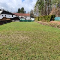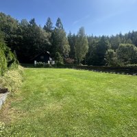 Nájezd na pozemek je travnatý a na 2/3 pozemku je mírně ve svahu, což za deště může někomu činit problém.