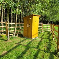 - Suchý záchod - latrína na pozemku. Súčasťou latríny je i stojanové umývadlo s mydlom a uterákom.