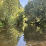 Pěkně upravený a posekaný pozemek hned vedle splavu . Ohniště , připravené dřevo a čistá kadibudka . Klidné odlehlé místo , i když sem tam projde rybář.